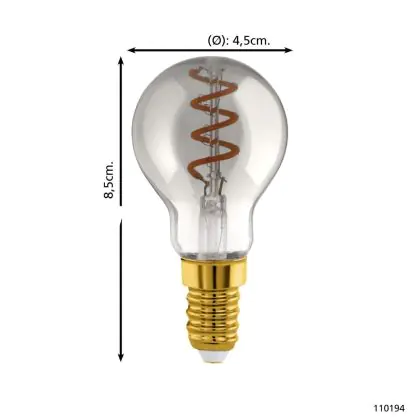 Beschrijving Eglo LED Kogel E14 Filament Smokey 4W 100lm - 820 Zeer Warm Wit | Dimbaar - Vervangt 15W