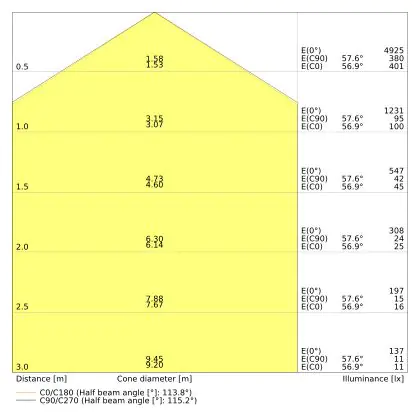 De lichtopbrengst (Lumen), geeft weer hoe krachtig het uitgestraalde licht is. Dit is belangrijk om te weten om de juiste sfeer te creëren. 0 tot 400 Lumen is bij uitstek geschikt voor accent- of sfeerverlichting. Een hoger aantal Lumen is, afhankelijk van de grootte van de ruimte, beter geschikt als ondersteunende- of basisverlichting. Heb je plafonds hoger dan 4 meter, dan is een lichtopbrengst van minimaal 8000lm aan te raden indien heldere verliching gewenst is (vb. in werkomgevingen).