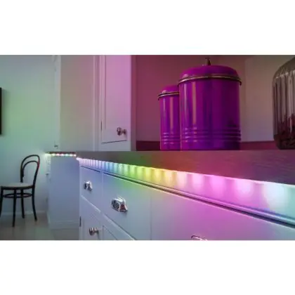 Met deze LED strip kun je iedere ruimte voorzien van het juiste licht. Deze lichtbron kan namelijk ook in hoeken worden geplaatst door het flexibele design van de strip én kan worden ingekort op de aangegeven kniplijnen. Bovendien heb je keuze uit diverse lichtkleuren, die LED strips geschikt maken voor zowel woningen als bedrijven. Hoewel het gebruik van gekleurde LED strips vooral met persoonlijke smaak te maken heeft, worden witte lichttinten specifiek gebruikt voor een bepaald doel. Deze LED strip heeft de lichtkleur 3000K - Warm Wit. Hier lees je waar welke lichtkleur het best tot zijn recht komt.
