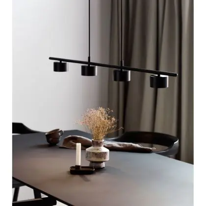 Een slanke maar moderne pendellamp, dat is de Nordlux Clyde. Het zwart metalen armatuur is 115 cm lang met hierover verdeeld 4 lampkoppen. Deze hang je bij installatie op op de hoogte die jij wenst boven je eetkamer- of keukentafel. En dat is niet het enige flexibele aan deze pendellamp ...