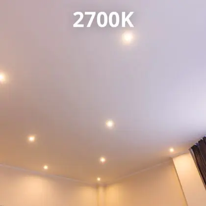 De lichtkleur duiden we aan in kelvin waardes, afgekort naar K. Deze LED spot heeft een kelvin waarde van 2700K. Ofwel zeer warm wit. Deze kleur wordt vooral toegepast op plekken waar sfeer gewenst is zoals bijvoorbeeld in je woonkamer of in hotels. Daarnaast is deze spot dimbaar waardoor het mogelijk is om nog meer sfeer te creëren.