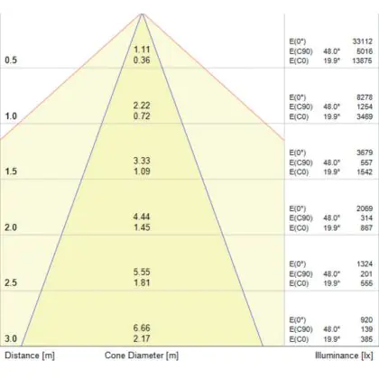Deze Noxion NX-Line module is berust met een stralingshoek, of gradenbundel, van 30° (SP30) waardoor de module een scherpe lichtstraal uitstraalt. Verder heeft de module een lichtopbrengst van 11200 Lumen waardoor je het goed kan gebruiken in gebieden met hoge plafonds.