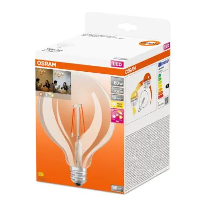 Beschrijving Voordeelpak 4x Osram SuperStar LED E27 Globe 125mm Filament Helder 7W 806lm - 822-827 Dim To Warm | Dimbaar - Vervangt 60W