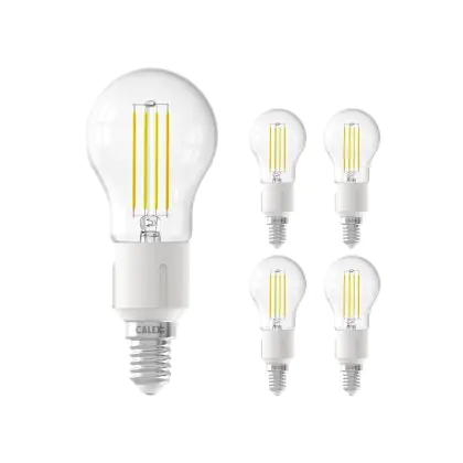 Beschrijving Voordeelpak 5x Calex Smart Kogelvormig LED Lamp E14 4,5W 450lm 1800-3000K Filament | Tuya Wifi - Afstembaar Wit